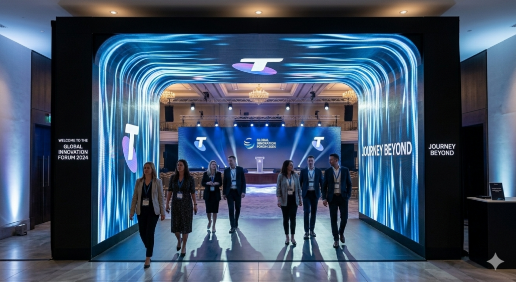 Event entrances set the tone before a single word is spoken. LED tunnels and immersive digital walk-through environments are increasingly used to create high-impact brand introductions.