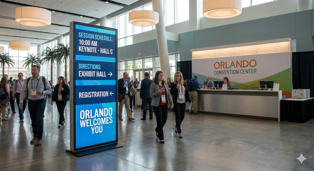 Large conferences in Orlando often span multiple halls, floors, and session tracks. Static signage struggles to keep pace with schedule changes and crowd movement. AV-driven wayfinding systems offer a dynamic alternative.