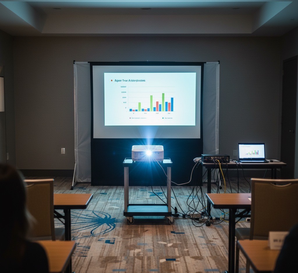 New York exhibit halls and hotels are space-constrained and fast-turn. If you are deciding between an LED wall and projection for a small booth, start with the room light and your content.