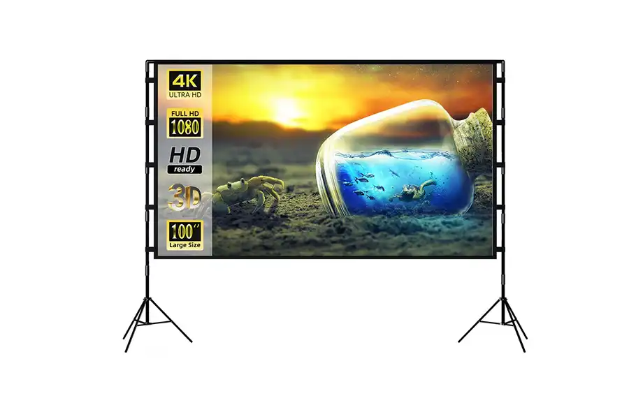 A sturdy support structure is integral to the design of this projection screen. It features a robust frame that ensures the screen remains secure and stable during use, even in busy or windy conditions, making it reliable for both indoor and outdoor events.